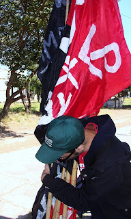 Llegamos frente a ese lugar, a muchos metros de altura y desplegamos las banderas, seguimos cantando “Clarín - Magnetto devuelvan a las nietos”. Me detengo acá para decir que es muy importante que tanta gente joven pueda dar la lucha contra estos sectores concentrados de poder que fueron cómplices y socios de la dictadura más sangrienta y que lavaron sus penas de un modo muy perverso frente a la sociedad.